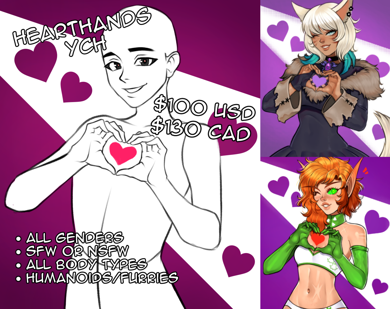 Please be sure to read my Terms of Service before ordering a commission.My listed prices are in CAD and USD ($) and examples of the work I offer can be found in COMMISSIONS or the button up above!Payments are done via online invoice. Clients will be asked if they would like to receive a Stripe or PayPal invoice.I do not offer commercial work at this time - these are for individual clients who own the completed commission for personal non-profit use.All images on this site are watermarked!